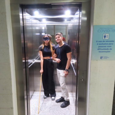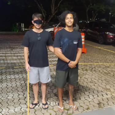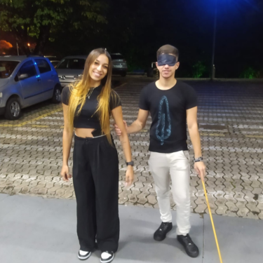 No início da aula, os alunos do curso receberam informações sobre os conceitos de Orientação e Mobilidade. Em seguida, fizeram uma prática no campus, onde eles foram distribuídos em duplas para transitar pela instituição aplicando os conteúdos ensinados na teoria.