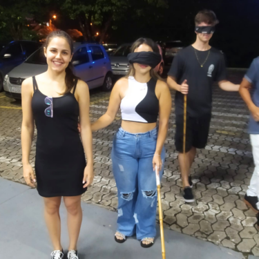 ALUNOS DE EDUCAÇÃO FÍSICA PARTICIPAM DE AULA PRÁTICA SOBRE CONHECIMENTOS BÁSICOS PARA A INCLUSÃO DA PESSOA COM DEFICIÊNCIA VISUAL