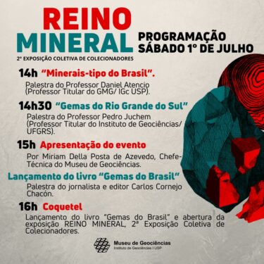O livro “Gemas do Brasil” será lançado, no dia 1° de julho, durante o evento “Reino Mineral – 2ª Exposição Coletiva de Colecionadores”. A iniciativa é do Museu de Geociências (Instituto de Geociências da Universidade de São Paulo). O exemplar é uma sequência da série: “Minerais e Pedras Preciosas do Brasil” e “Coleções Minerais do Brasil”. De autoria do jornalista e editor Carlos Cornejo Chácon, na obra são registrados minerais e artefatos pesquisados no Laboratório de Mineralogia do UNIFOR-MG.