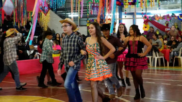 Bandeirinhas, balões e muitas cores fizeram parte da decoração. No cardápio: pipoca, canjica, cachorro-quente, tropeiro, pastel, cocada, além de outras comidas típicas. Para a diversão da garotada, brincadeiras, como pula-pula e plataforma 360° graus.